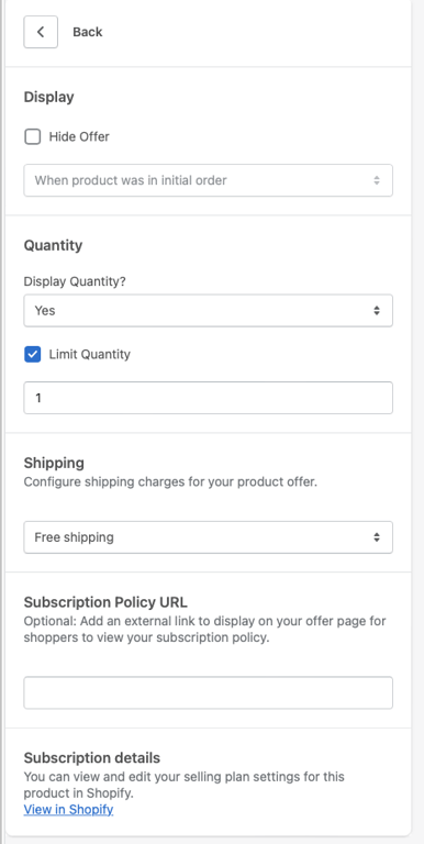 You can edit the display, shipping, and quantity options for your offer by visiting Subscription Settings in your Offer Editor.Â