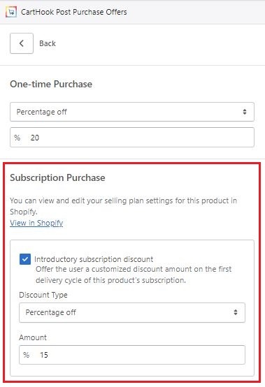 NEW: We now offer the ability for you to add a one-time subscription discount for the first shipment! Recurring shipments afterwards will be charged at the price as set up in your subscription app.Â