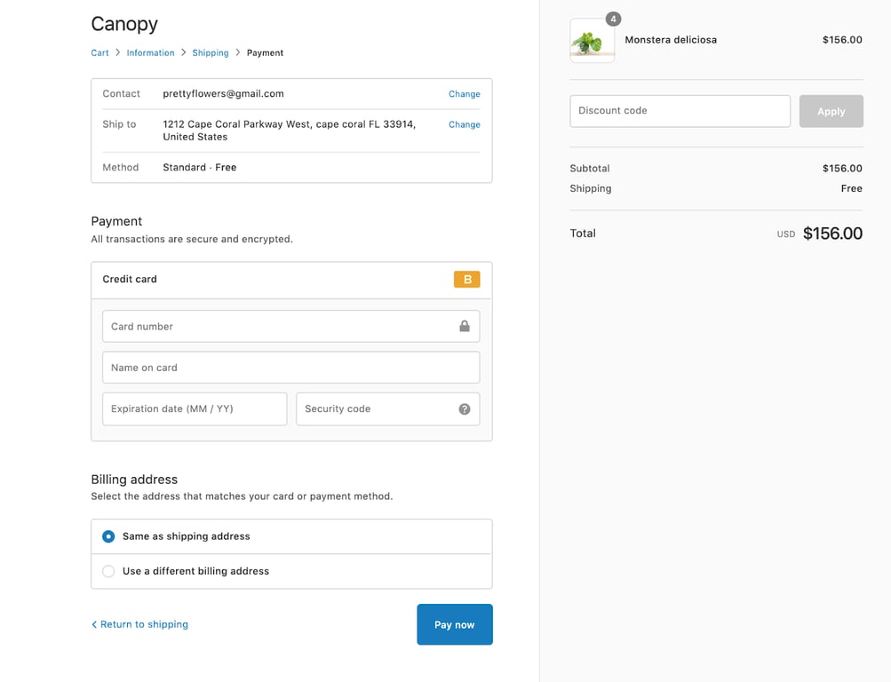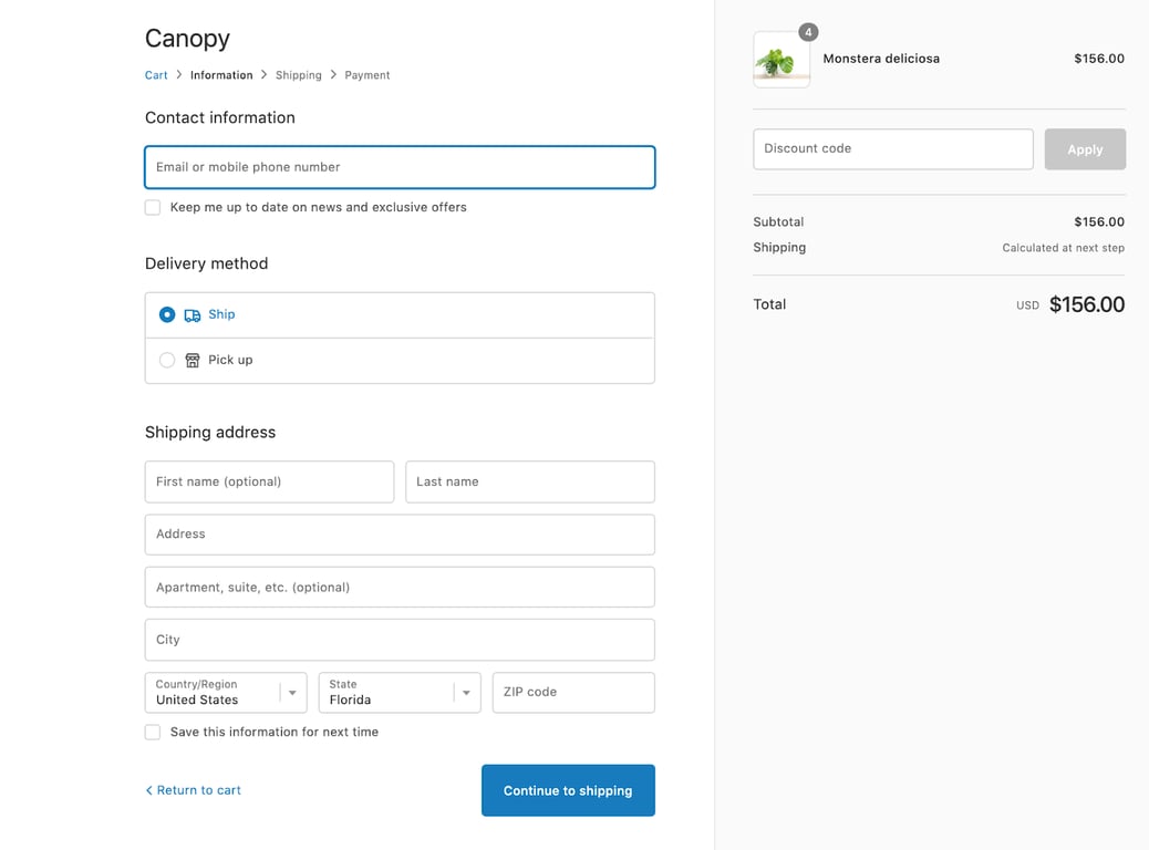 Clicking checkout will bring your shopper to the page where they enter their information.